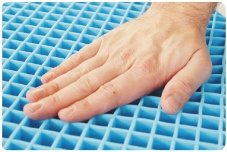 EquaGel® is a dry-polymer gel, almost rubbery. It is not a liquid! One of its most amazing features is referred to as “COLUMN BUCKLING”. Simply put, each wall of gel is capable of supporting only a marginal load. When that threshold is exceeded, the wall buckles under and passes the weight to the surrounding walls for support. This “buckling and weight-passing” happens instantly and repeatedly until the maximum surface area of pressing weight is evenly supported by sufficient walls to hold the weight up, regardless of its shape. The pressure points of the ischium and coccyx are allowed to buckle into the cushion without resistance while the buttocks are supported evenly. The areas most likely to develop pressure sores are allowed to float nearly pressure-free within the pad while the client’s weight is distributed evenly across the cushion.